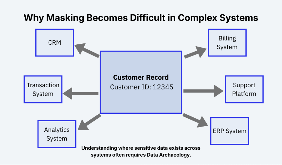 As system complexity grows, the effort required to maintain consistent masking across environments increases dramatically.