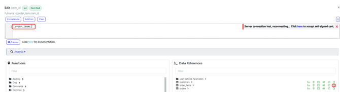In the scenario where a value from a table generated beforehand is required, the linked table references can be used again. The only difference here is that you need to select the column from a different table. For example, to generate data into the ‘order items’ table, the ‘order id’ from the ‘orders’ table can be used to make sure the data generated is referentially integral.