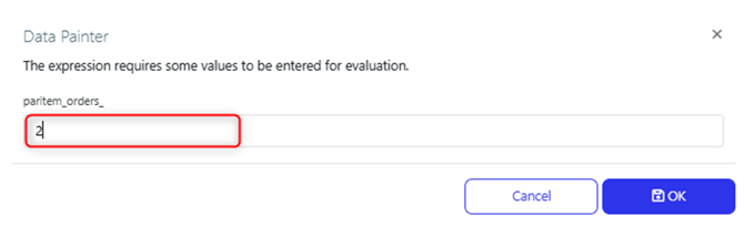 When clicking on the relevant Data Reference Variable the relevant object is inserted into the data painter screen. In the example below, we have used the reference variable ‘current_index’ which will give a current indicator for the ‘order_items’ table, and will therefore act as ‘Item ID’.