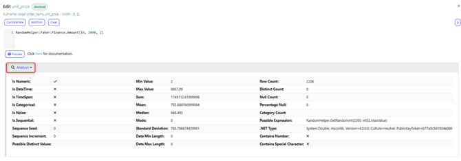 It is often helpful to have the meta data about the column you are generating into available in data painter. This information is available in the analysis section and contains all the information captured in the deep scanning conducted in Module 1 – Data profiling and discovery.